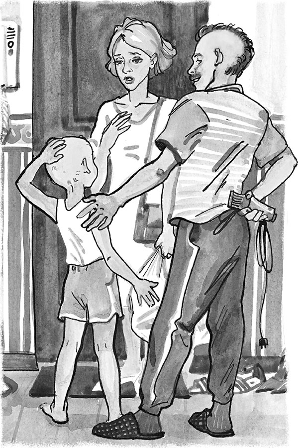 – Гм, – прищурился папа. – Надо, пожалуй, для гармонии остальные волосы тоже убрать. – И вытащил из шкафа парикмахерскую машинку. – Смотри, что у меня есть! Ещё с армии!