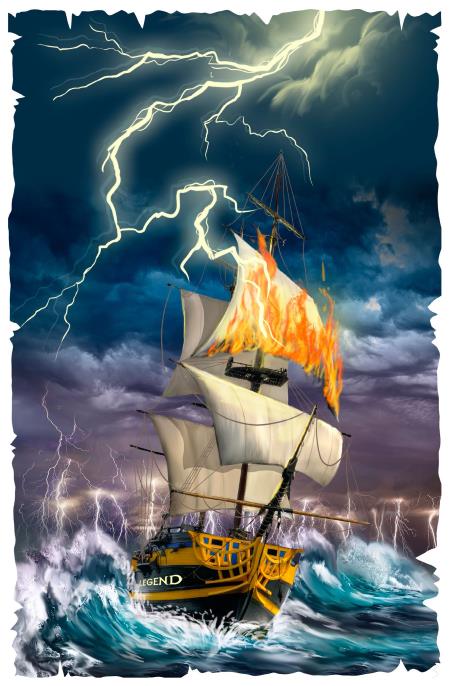 Сверкнула еще одна молния и на этот раз, ударив, попала прямо в главный парус. Начался небольшой пожар, и дождь не в силах был потушить его.
