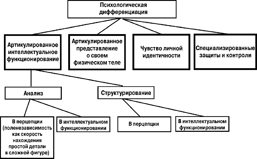 Рис. 1. Место понятия «полезависимость/поленезависимость» в системе понятий теории психологической дифференциации (цит. по: Witkin, Oltman, Raskin, Karp, 1971).