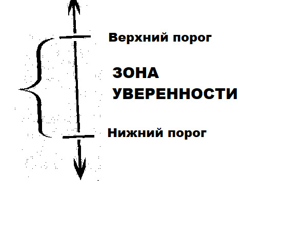 Психологи говорят о существовании так называемой «зоны уверенности», ограниченной нижним и верхним порогами.
