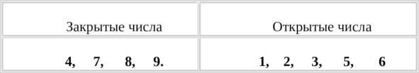 Таблица 8. Закрытые и открытые числа.