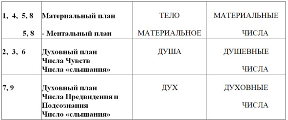 Таблица 6. Значение чисел.