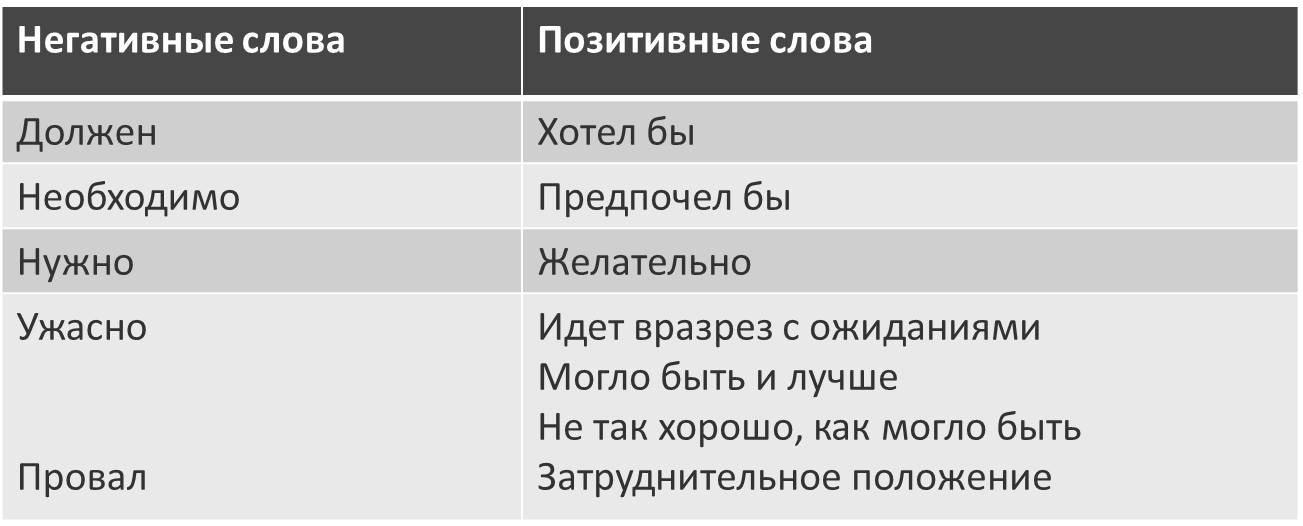 Старайтесь выбирать более позитивные слова во время общения с человеком.