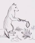 Звери осторожно приблизились и раздвинули кусты. Огонь на самом деле находился не так уж и близко, просто темнота скрадывала расстояние. На открытой полянке они увидели костёр, возле которого сидел одинокий волк и держал над пламенем палку с надетым на неё куском мяса. Волк вздыхал и скулил самым печальным образом.