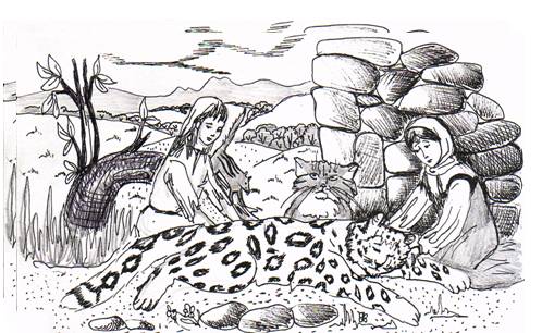 – Нет, жена, не боялся. Чтобы узнать, как избежать опасности для своей жизни, я обратился к одной мудрой – премудрой колдунье. Она посмотрела в свой бурлящий котёл и сказала, что ждёт меня погибель только от белого барса почти без пятен и полосок на шкуре, – заявил беркут, – так что люди мне не страшны. Мол, если он отдаст свою жизнь, погибну я сразу со всеми своими прислужниками.