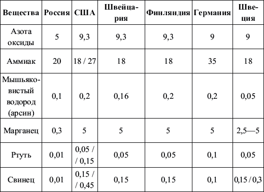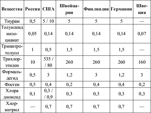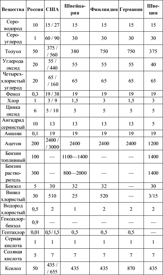 Отечественные и зарубежные нормативы (рекомендации) содержания вредных веществ в воздухе рабочей зоны