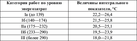 При этом абсолютные значения температуры воздуха не должны выходить за пределы величин, указанных в таблице 8 для отдельных категорий работ.