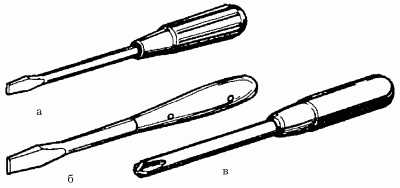 Рис. 13. Отвертки: а, б – плоские; в – крестовая.