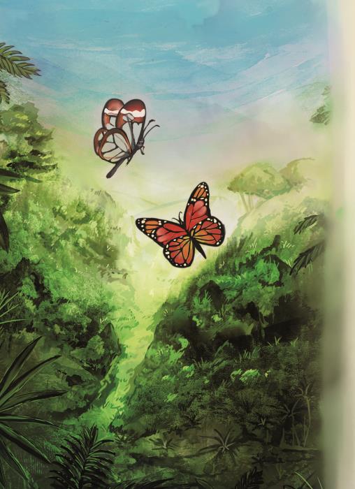 Грета и Стелла появились на свет одновременно. На одном из зелёных листов цеструма – вечнозелёного кустарника в тропическом лесу Амазонии. Как хорошо, что их мамы – бабочки – позаботились о своих детях и отложили яйца на этом неприхотливом кустарнике, листья которого служат пищей для новорождённых гусениц, но совсем не привлекательны для других насекомых и животных, так как содержат ядовитые вещества. Гусеница Грета была красная с пурпурными полосками, а Стелла – жёлтая в чёрно-белую полоску – она была из рода монархов.