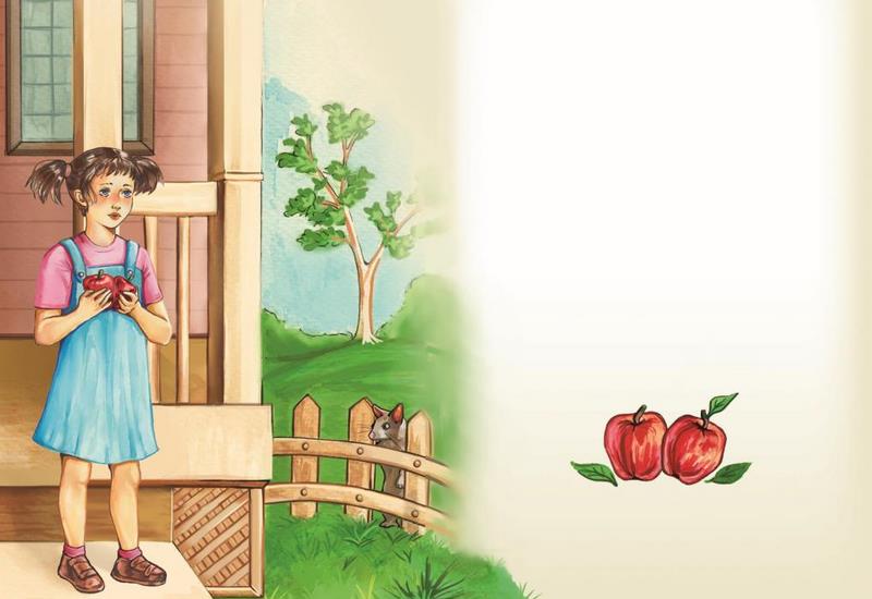 Утром Эмили вышла на крыльцо, и первое, что она увидела, были два красных яблочка с её яблоньки. Она их сразу узнала. Эмили посмотрела вокруг – никого. Вдруг за оградой она заметила маленького пушистого зверька. Он смотрел на неё своими большими, немного выпуклыми глазками и улыбался!