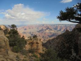 Дорога стала петлять, скорость пришлось сбросить, но до Гран Каньона добраться получилось уже к полудню. Каньон Колка в Перу, во всех отношениях замечательный, на фоне Гран Каньона все же отдыхает.... И прежде всего из- за разнообразия красок. Особая красная порода камня придаёт очарование этой горной впадине и на солнце, и в пасмурный день. Ну и, как всегда, меня "полюбили" местные вороватые животные. В пакете, взятом со стоянки из машины, был бутерброд и банан. На минутку положила его на землю, отправившись на край горы фотографировать пропасть, оборачиваюсь- наглая белка держит в зубах край моего пакета и смотрит на меня вызывающе: разве не имею права?))) отогнала её и порадовалась, что она хотя и борзая, но не очень большая.... Вспомнилось, как в Южноафриканской Республике в жару мы шли по тропе в гору, смотреть сверху на Мыс Доброй Надежды и омывающие его два океана. В таком же пластиковом пакете я несла банку Колы и чистые запасные носки, на случай натертых кроссовками ног. И когда у меня кто- то сзади выдернул пакет из рук, я опешила. Тут увидела здоровенную обезьяну, отошедшую всего на пару метров за канаву и неспешно разбирающую мой пакет. Грозить горилле было страшновато, я попискивала что- то гневно, и это лишь привлекло к нам прочих разноплеменных туристов. Под общий сдавленный смех мерзкое животное вытащило из пакета один мой носок, понюхало, размахнулось и запустило носком далеко себе за спину. Повторяю, носки были чистые, свежевыстиранные! Второй носок обезьяна нюхала дольше, выворачивала наизнанку и всяко разглядывала. Проткнула ногтем в нем дырку. Зрители теоретически очень меня жалели, а практически держались за животы и ухахатывались. Затем горилла решила попить моей колы, но не знала, как открыть банку. Стучала ею о камень, сплюснула с разных сторон, зубами погрызла… Потеряла терпение и бросила мне под ноги. Как ни хотела я пить, но банку подбирать не стала – обиделась))) да и пить из неё было бы затруднительно теперь. На всем протяжении пути не было ни одного кафе с водой, те, что изначально там находились, были закрыты по техническим причинам. Я не помню, как давно я хотела пить так же, как в тот день… Ненавижу горилл с тех пор. Ну и белок не жалую, они другие в Америке, не российские маленькие хрупкие создания с пушистым хвостом, а прыгающие по деревьям толстые лупоглазые крыски, вгрызающиеся во все, что плохо лежит.