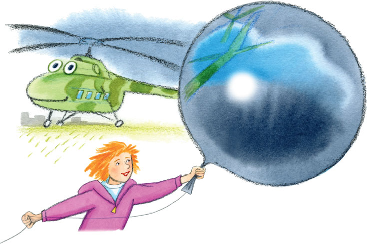 Я снова очутилась на холме. Выглянуло солнце. И я увидела, что шар не только чёрный и прозрачный. В нём отражалось всё, как в самоваре! В нём отразился аэродром! Жёлтые планёры с крыльями в красную полоску, ангар, прожекторы, пожарная машина, зелёные хвосты вертолётов!..