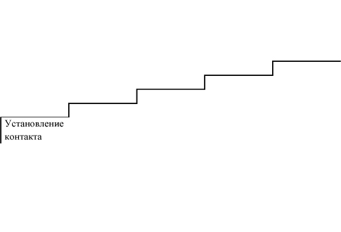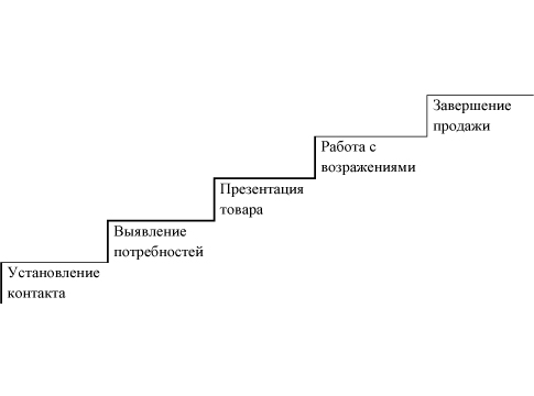 В итоге на флипчарте получим лесенку в которой снизу наверх написано: Установление контакта, Выявление потребностей, Презентация, Работа с возражениями, Завершение продажи.