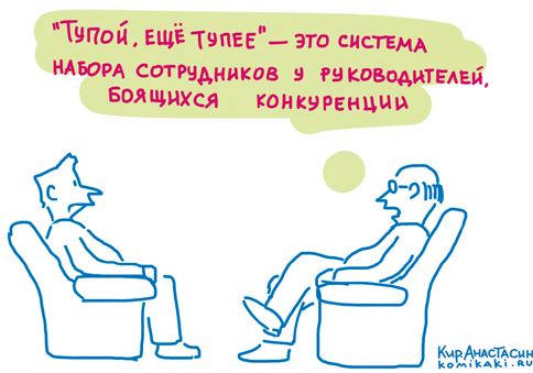 Чего мы боимся, когда на горизонте появляется кто-то круче нас? Правильно, мы боимся потерять авторитет, а еще, может, работу, если он вообще не уведет вашего супруга (кто знает, насколько человек крут). Но на самом деле этот фантастический сотрудник может всего этого не хотеть. Вот так просто. В частности, многие разработчики отчаянно не хотят никем руководить, ходить на встречи, отвечать за соблюдение сроков и прочую чепуху. Поэтому для начала стоит понять, претендуете ли вы на одну и ту же зону ответственности. Если специалист круче вас, но не хочет брать на себя вашу ношу, – поздравляю, у вас появился лояльный к вам профессионал. Вы ему полезны как человек, закрывающий административные дыры, а он для вас будет делать дело, причем качественнее, чем вы.