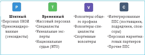 Отвечают «нет», здесь все не просто так. Оказывается, в спортивном мероприятии будет задействовано много разных типов персонала: штатный персонал; временный персонал, который нужен на короткий период времени перед Играми; персонал подрядчиков и партнеров; участники церемонии, волонтеры и т. д. Хотя Оргкомитет непосредственно управляет не всеми этими людьми, успех Игр зависит от вклада каждого. Гостю Игр все равно, кто ему помогает – руководитель или волонтер, если ему не смогут показать дорогу к объекту или будет плохо работать Wi-Fi. Поэтому ответственность WKF – это все люди, влияющие на успех Игр.