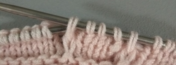 1 ряд: кромочная, 12 лицевых, прибавка из протяжки, 2 лицевых, прибавка из протяжки, 2 лицевых, прибавка, 2 лицевых, прибавка их протяжки, 15 лицевых, прибавка из протяжки, 2 лицевых, прибавка из протяжки, 2 лицевых, прибавка, 2 лицевых, прибавка их протяжки, 12 лицевых, 1 изнаночная