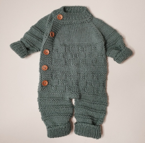 Проводим ВТО комбинезона, сушим на ровной поверхности. Пришиваем пуговки. Комбинезон готов.