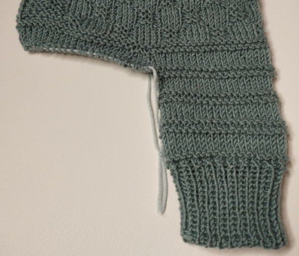 Далее будем вязать рукава по кругу на пяти чулочных спицах №4. Начинаем с левого рукава.