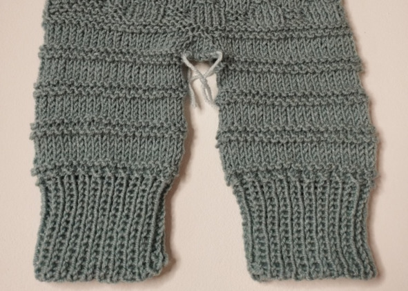 Отрезаем нить. Затем синий маркер спереди комбинезона будет началом ряда.