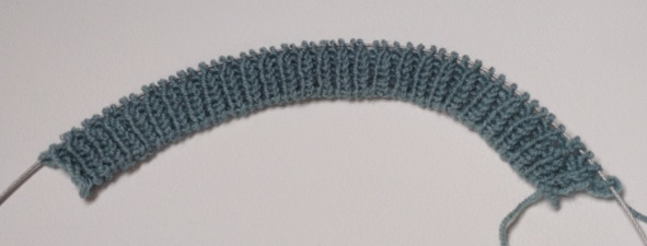 8 ряд: кромочная, 6 лицевых, 74 изнаночных, 6 лицевых, 1 изнаночная (88 петель)