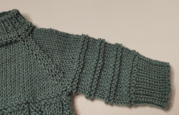 1 ряд: кромочная, 6 лицевых, прибавка из протяжки, 13 лицевых, прибавка из протяжки, 2 лицевых реглана, прибавка из протяжки, 2 лицевых, прибавка их протяжки, 2 лицевых реглана, прибавка из протяжки, 17 лицевых, прибавка из протяжки, 2 лицевых реглана, прибавка из протяжки, 2 лицевых, прибавка их протяжки, 2 лицевых реглана, 6 лицевых, 1 изнаночная