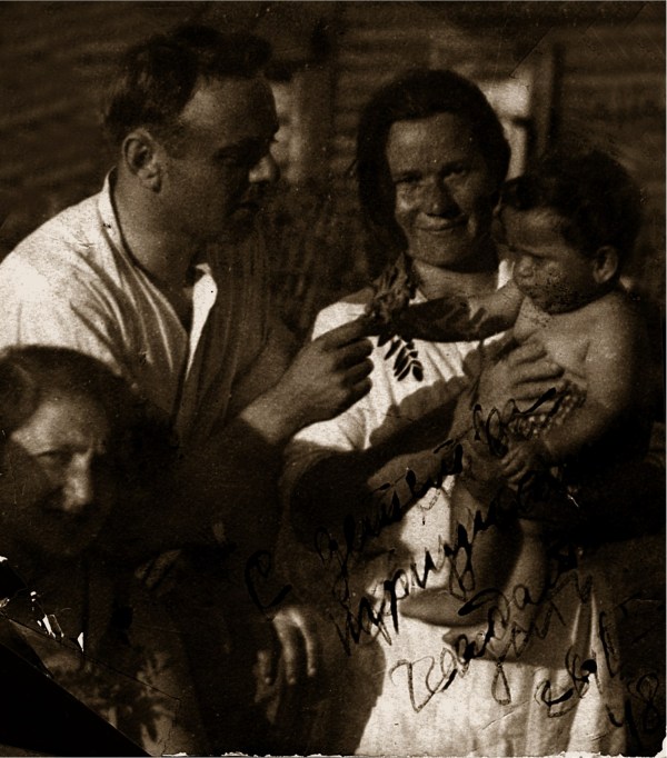 Вера Маймина, Борис Волчек, няня Таня с маленькой Галей на руках в первое ее лето