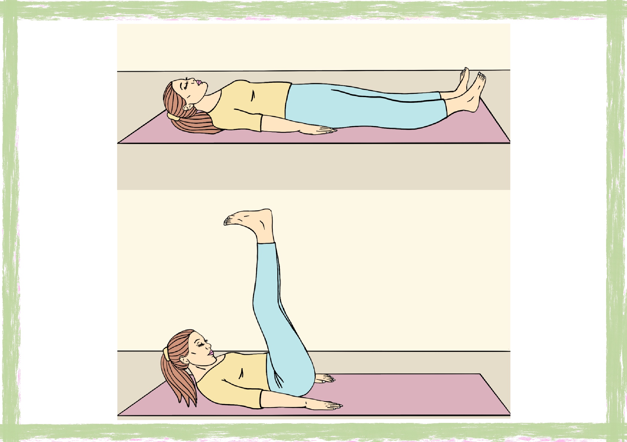 Приняв исходное положение лёжа, на плавном глубоком вдохе поднимаем голову и ноги вверх. Стараемся не отрывать плечи и таз от пола и не сгибать колени. Далее на плавном выдохе возвращаемся в исходное положение. Руки во время всего упражнения расположены вдоль тела.