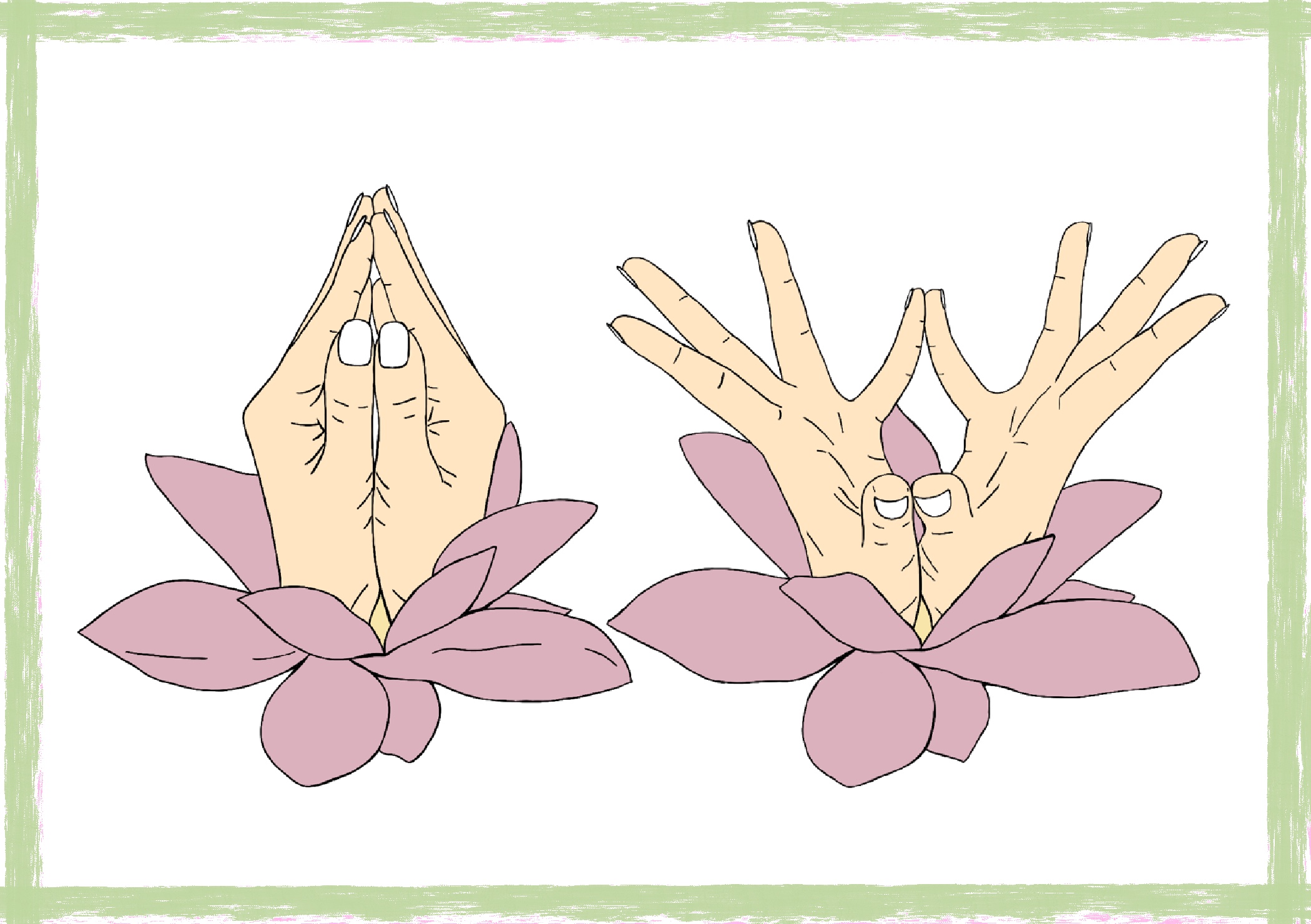 Для выполнения мудры основания ладоней, подушечки мизинцев и больших пальцев обеих рук соединяем на уровне груди. А остальные пальцы раскрываем в виде цветка лотоса. Держим руки в данном положении в течение четырёх глубоких вдоха и выдоха. Затем складываем руки в бутон – подушечки противоположных пальцев обеих рук соприкасаются друг с другом. В этом положении руки остаются также четыре дыхательных цикла. И далее вновь раскрываем пальцы в виде цветка лотоса. Мудру желательно повторить 5-6 раз.