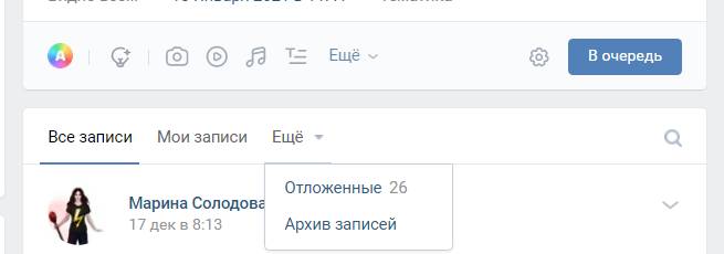 7. Как посмотреть пост? Нажать: «Ещё», потом: «Отложенные».