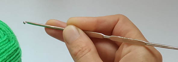 Начнем вязать воздушные петельки. Крючок следует держать так: