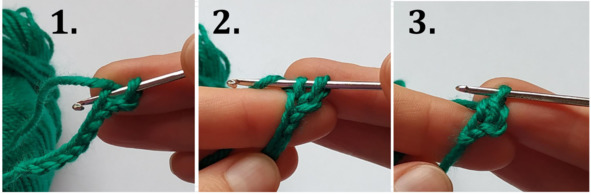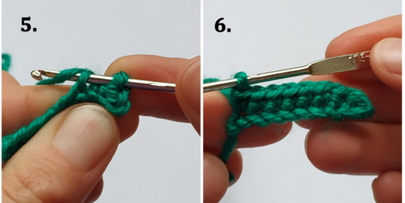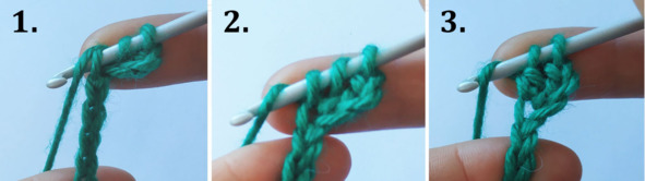 1. Проденьте крючок во вторую петлю от крючка (воздушную петлю).