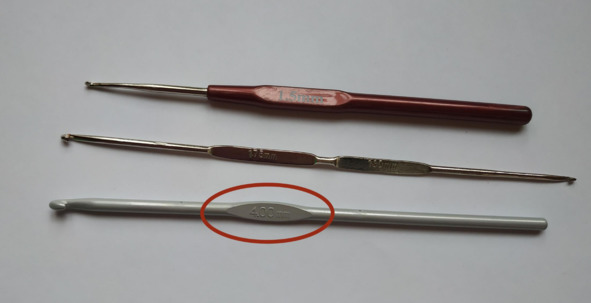 • Крючки бывают разные по толщине. Обычно на ручке есть плоская часть, на которой Вы увидите номер, означающий толщину крючка. Чем меньше номер, тем тоньше крючок. Например, №1 – это толщина крючка 1 мм, №2- толщина крючка 2мм. Для обучения я рекомендую крючок №1.75—2.