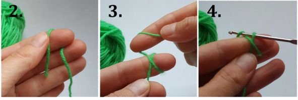 1. Возьмите нитку в левую руку, а крючок в правую (для правшей).