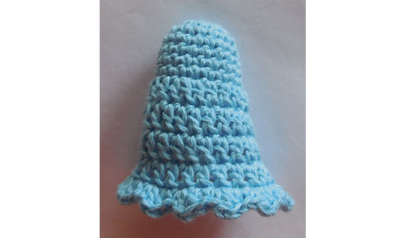 Примеряйте изделие на пальчик. При необходимости увеличить высоту пальчика вяжите еще дополнительные ряды.