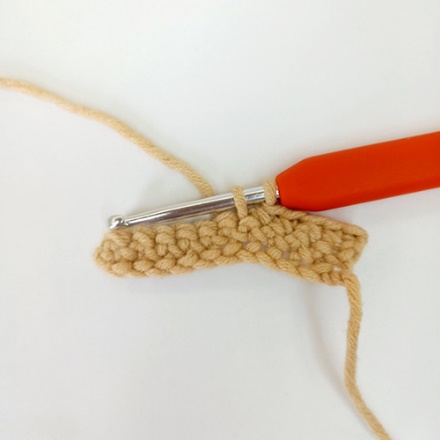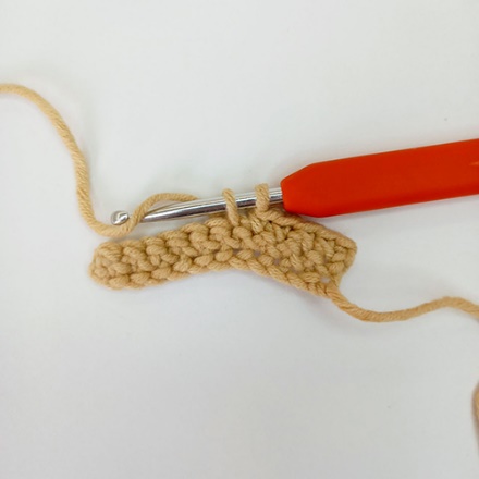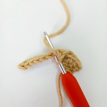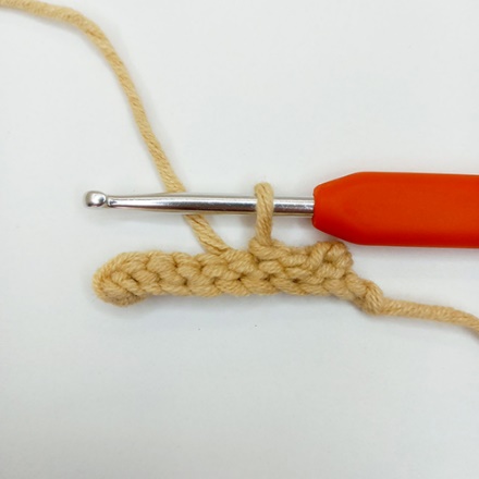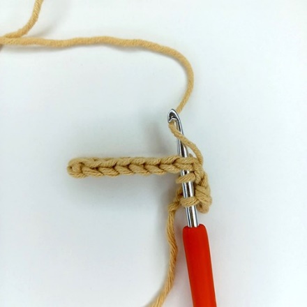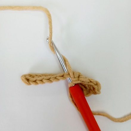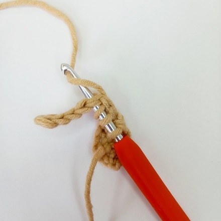 1.Крючок вводим под обе стенки одного основания столбика предыдущего ряда