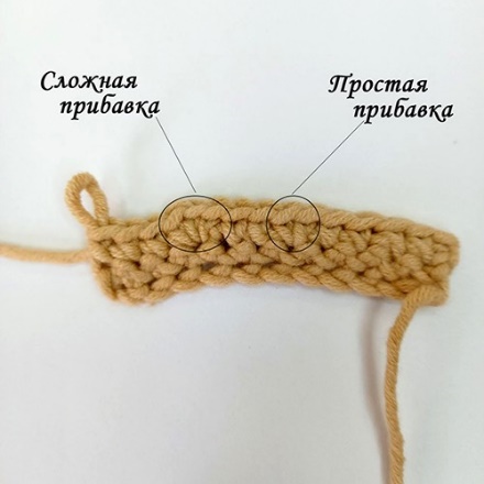 Сложные прибавки вяжутся точно также, как и простые только из одного основания провязываем не 2 столбика, а нужное количество (3, 4 и т.д.)