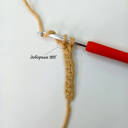 1.Вводим крючком под основание столбика предыдущего ряда или под заднюю стенку ВП