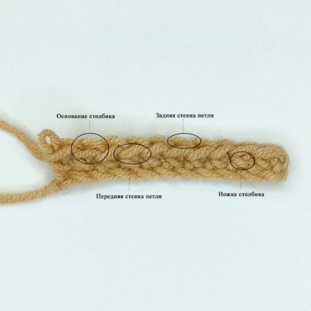 Основание столбика – элемент вязания крючком, образованный при вязании столбиков и состоящий из передней и задней стенки (фото 5)