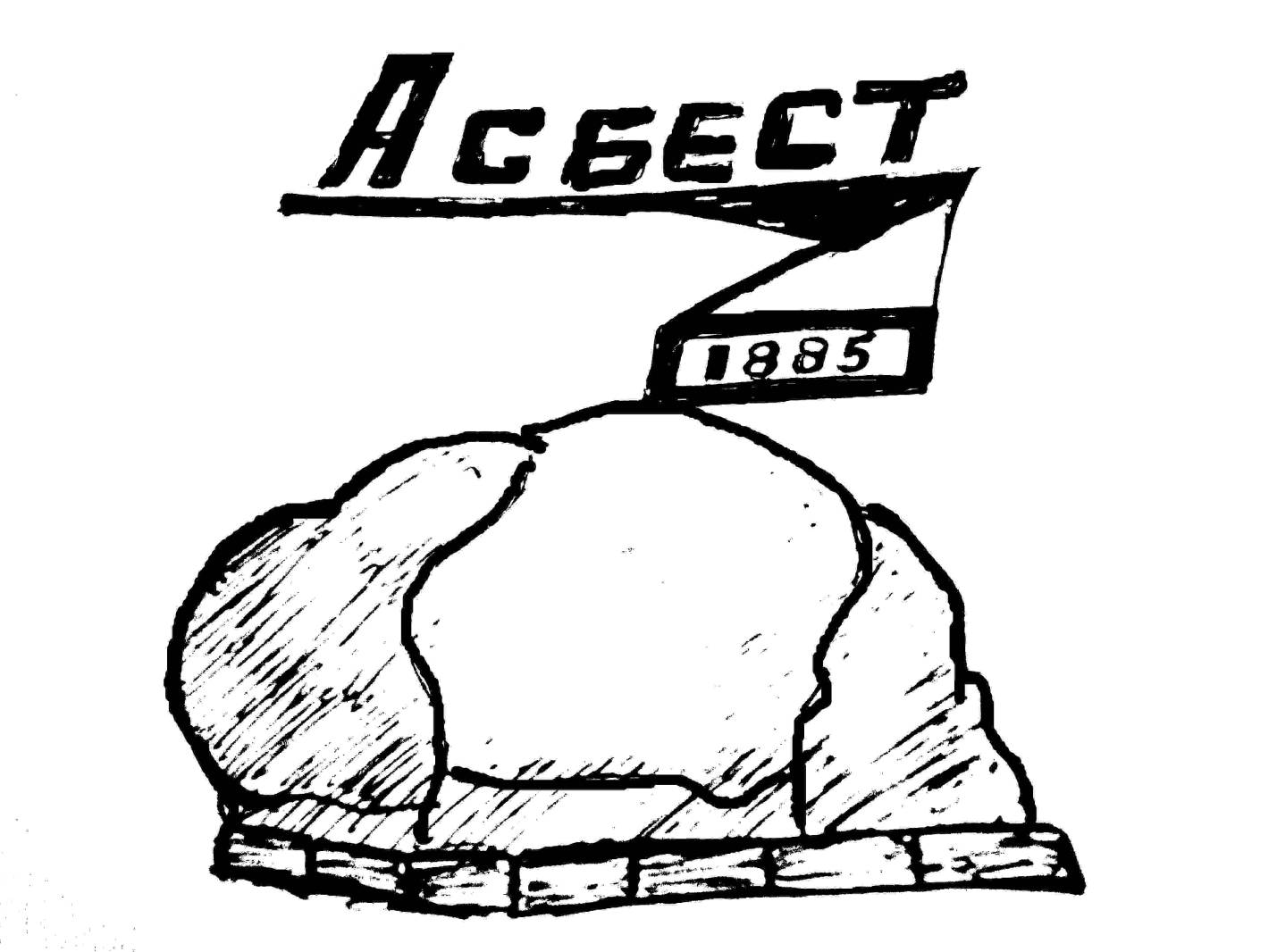 Как только мы въехали в город, то нас встретила огромная глыба с прожилками асбеста и надписью «АСБЕСТ».