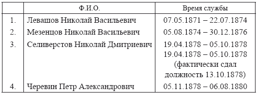 Помощник начальника архива И.К. Тимофеев, происходивший из солдатских детей, поначалу служил писарем в Департаменте военных поселений, в 1846 г. был прикомандирован к Петербургскому жандармскому дивизиону, а с 1847 г. в чине поручика штаба Отдельного Корпуса жандармов состоял при III отделении. В 1849 г., уволенный от службы «для определения к статским делам и с переименованием в губернские секретари»[130], был определен в III отделение сверх штата помощником начальника архива. За добросовестную службу имел награды, продвигался по служебной лестнице: за 27 лет работы в III отделении прошел путь от чиновника XII класса (губернского секретаря) до чиновника IV класса (действительного статского советника). Был уволен от службы в 1876 г. по состоянию здоровья.