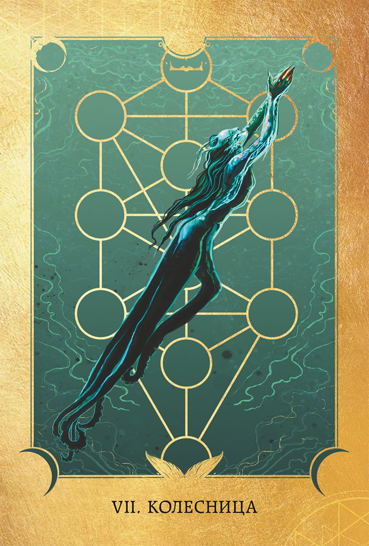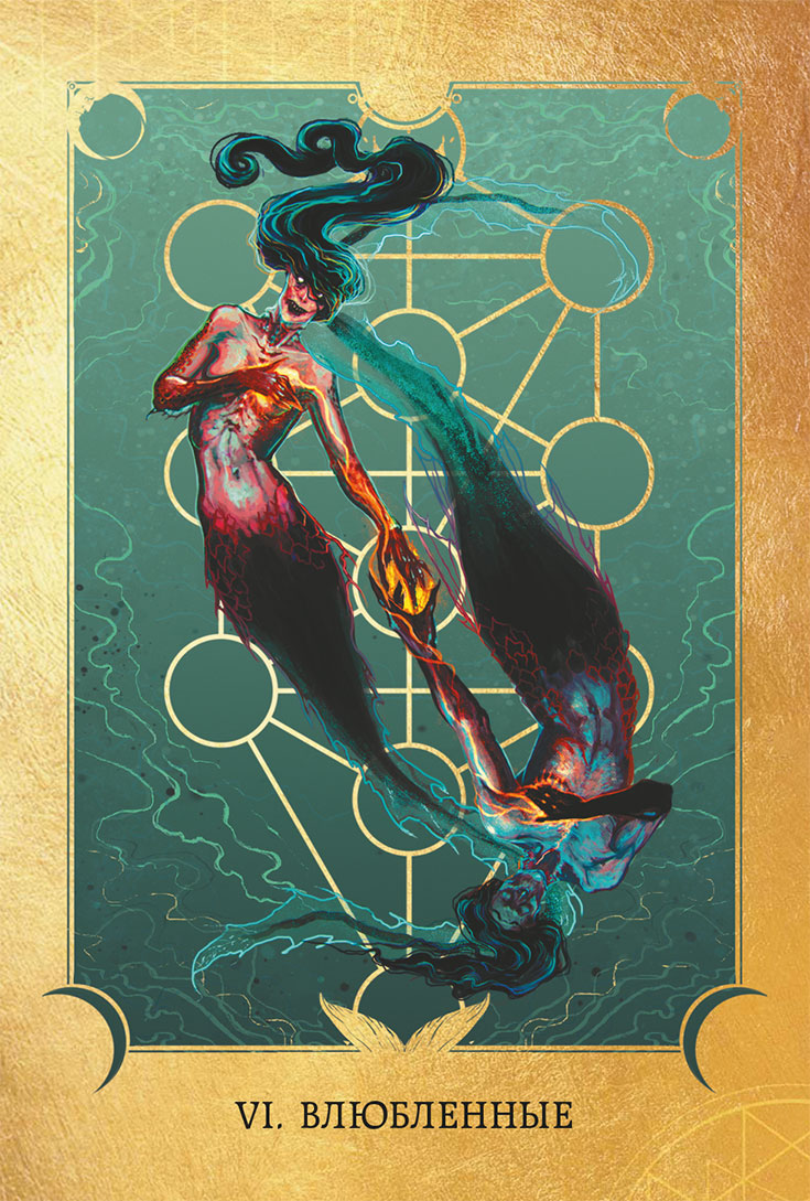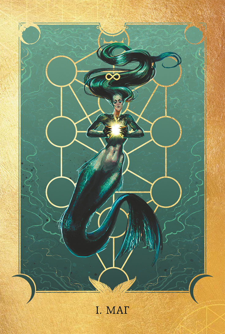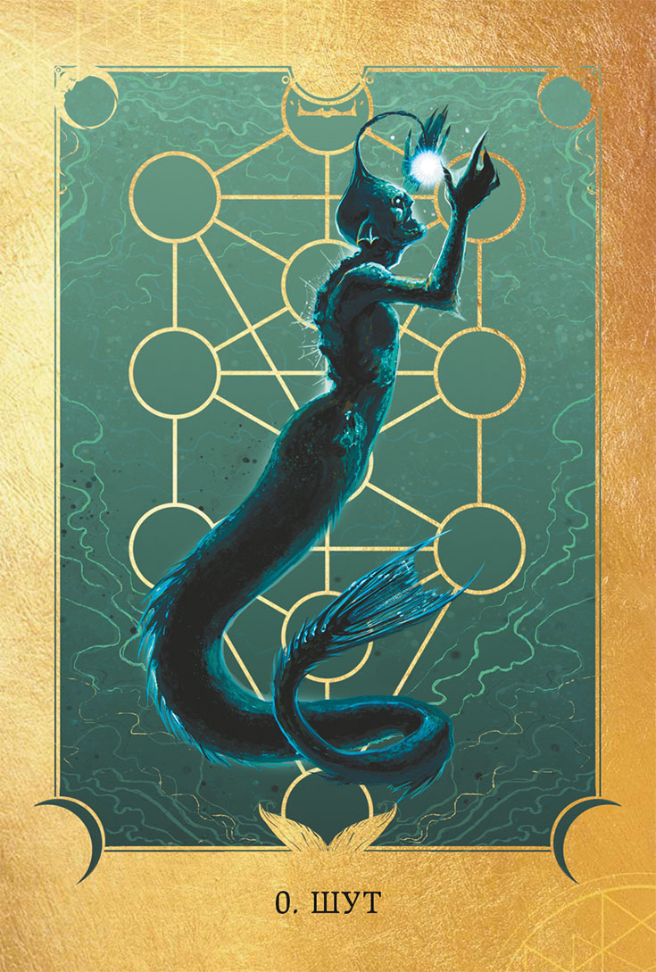Морская ведьма на аркане Шута представлена в виде русалки с головой рыбы-удильщика. Светящаяся приманка на ее голове не предназначена для маленьких доверчивых жертв: это безумная идея, которая манит и соблазняет саму ведьму. И ведьма поддастся соблазну: ведь к новому ведут только запретные дороги. Да, это может быть опасно, но как иначе познать неизведанное?