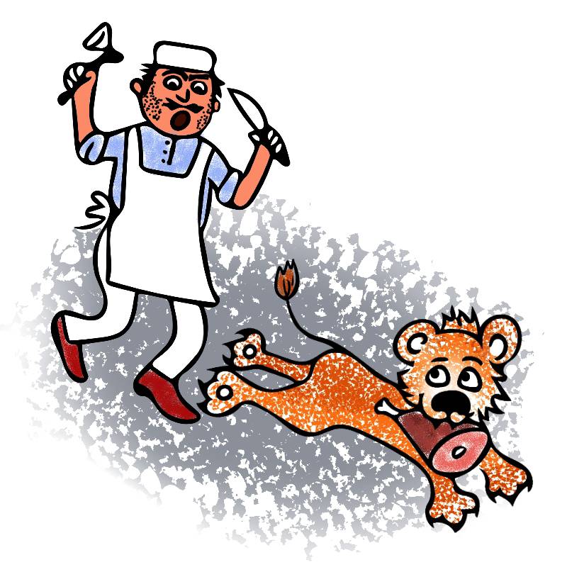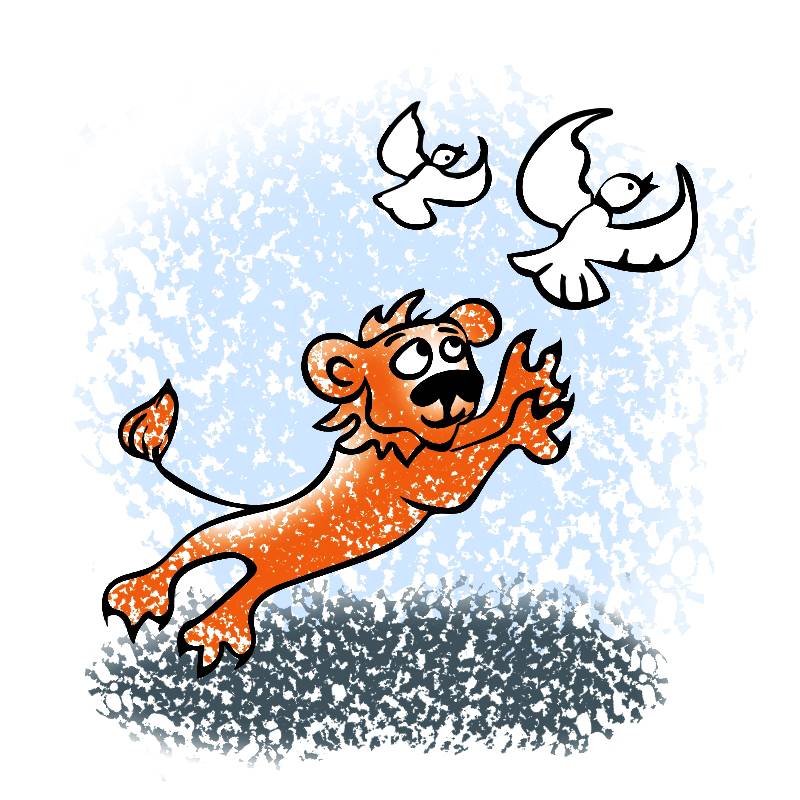 – Стой! Держите его!!! Мой окорок! Откуда в городе лев!?
