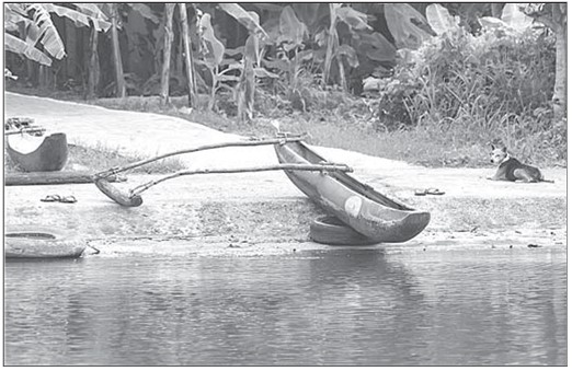 Лодка-однодревка с прикрепленным к ней балансиром