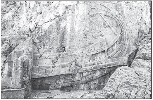 Рельеф родосского триремного военного корабля, высеченного в скале на восхождении к Акрополю Линдоса