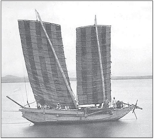 В это время в Китае тоже не сидели на берегу, а осваивали водные пространства как на реках, так и в море. В I веке н. э. китайцы придумали жесткий осевой руль и стали делать паруса из бамбуковых реек и циновок. При этом на каждой мачте крепили несколько парусов, которыми управляли по отдельности в зависимости от направления и силы ветра. До сих пор эта практика применяется на китайских джонках.
