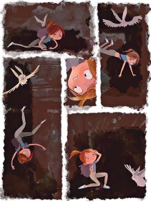 У страха есть одна суперспособность: растягивать время. Пока Вика падала, ей казалось, что она летит целую вечность! Но в конце концов она плюхнулась на горку песка и мелкой каменной крошки, а сверху на неё упал рюкзак. Подняв голову, Вика увидела тоннель, из которого вылетела, – получалось, что падала она всего ничего, потому что тот был совсем низко!