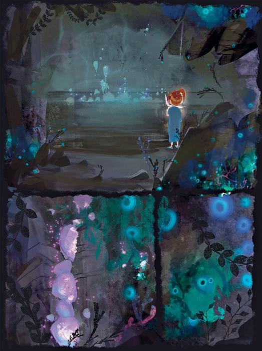 Решив, что это сойдёт за ответ «да», Вика сделала глоток. И тут в центре озера, прямо там, куда упал брошенный камень, появилось зеленоватое свечение. Оно становилось всё ярче и ярче, пока Вике не начало казаться, что всё озеро превратилось в один большой источник холодного неонового сияния.