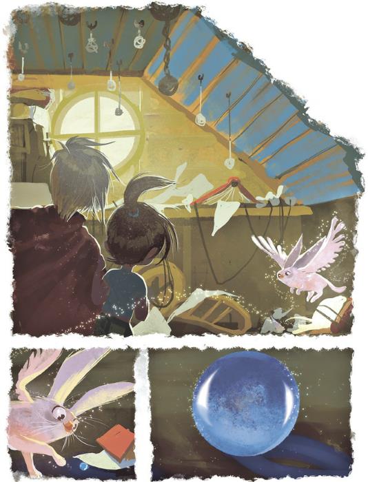 Вика присела на корточки, чтобы поближе рассмотреть чудно́е существо. Но не успело оно приблизиться, как из рюкзака буквально вырвалась Ванилька и бросилась на «черепаху», словно орёл на добычу. Мечта подлетела к странной зверюшке, попыталась клюнуть её по панцирю и забила крыльями, будто хотела прогнать.