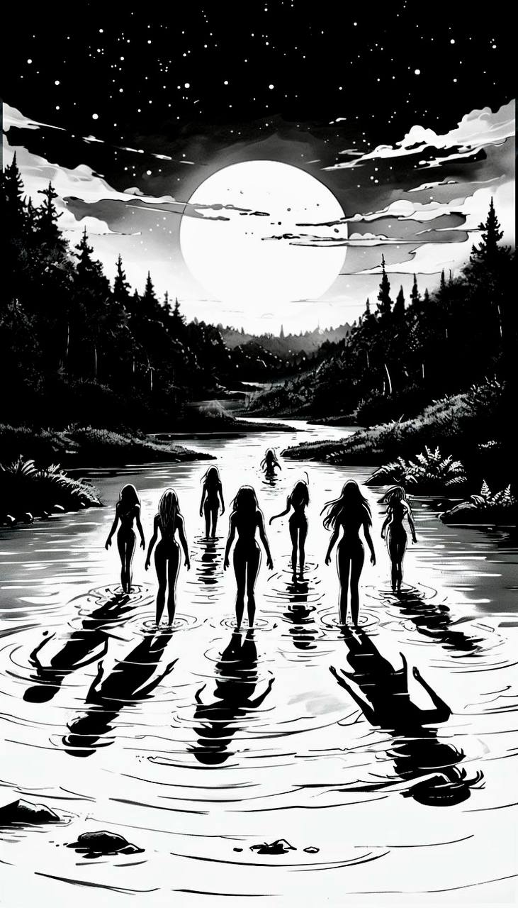 Ночь была волшебная. В такие ночи русалки танцуют на пригорках, а потом прыгают одна за другой в чёрную воду рек и озёр, чтобы вернуться по весне. Девушки поддались очарованию ночи. Весёлый гомон притих, а потом и вовсе замолк. Завели протяжную, да на середине бросили: залюбовались.