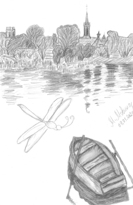 «Как хорошо…» – расслаблено подумала она и увидела большую стрекозу, летящую размашисто и легко, и низко-низко, над самой водой. Стрекоза приближалась к лодке. Вот она, поблёскивая крылышками, подлетела, залетела в лодку и, задрожав слегка крылышками, присела на деревянную перекладинку напротив.